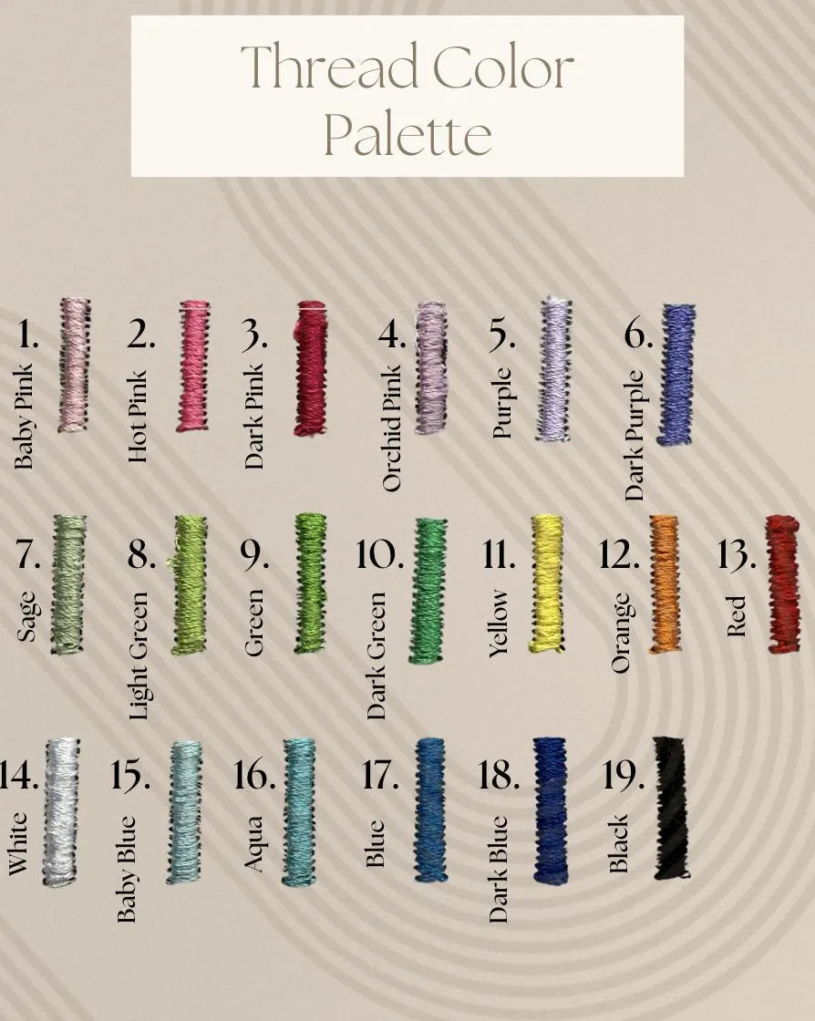 The size of the embroidery name will vary based on the number of letters it contains. Generally, a shorter name will result in a larger embroidered name. The embroidery area available for the design is 18x13cm (7x5 inches). To make the most of this area, if you have two or three names, they can be divided into two lines. However, if you prefer to keep the name in one line, please let me know.